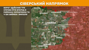 На Сіверському напрямку ворог здійснив три спроби йти вперед в районах Серебрянки та у бік Виїмки і Ямполя.