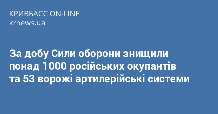 За добу Сили оборони знищили понад 1000 російських окупантів та 53 ворожі артилерійські системи