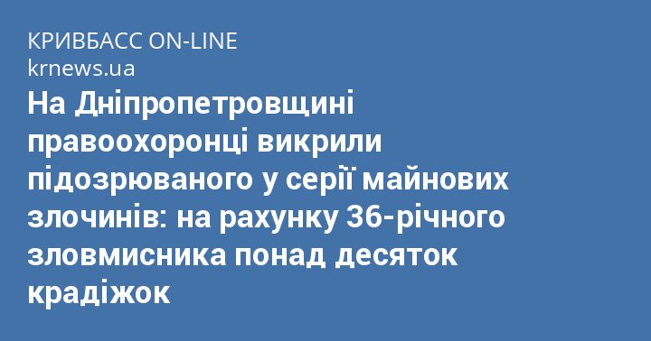 На Дніпропетровщині правоохоронці викрили підозрюваного у серії майнових злочинів: на рахунку 36-річного зловмисника понад десяток крадіжок