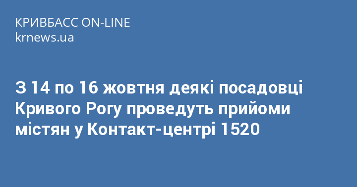 З 14 по 16 жовтня деякі посадовці Кривого Рогу проведуть прийоми містян у Контакт-центрі 1520