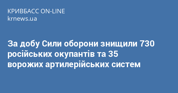 За добу Сили оборони знищили 730 російських окупантів та 35 ворожих артилерійських систем