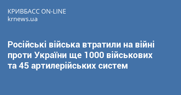 Російські війська втратили на війні проти України ще 1000 військових та 45 артилерійських систем