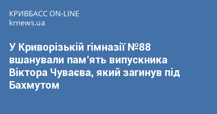 У Криворізькій гімназії №88 вшанували пам’ять випускника Віктора Чуваєва, який загинув під Бахмутом