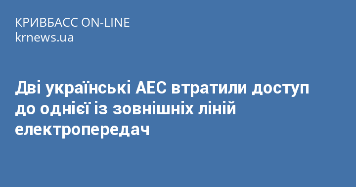 Дві українські АЕС втратили доступ до однієї із зовнішніх ліній електропередач