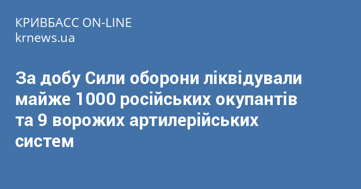 За добу Сили оборони ліквідували майже 1000 російських окупантів та 9 ворожих артилерійських систем