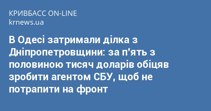В Одесі затримали ділка з Дніпропетровщини: за п'ять з половиною тисяч доларів обіцяв зробити агентом СБУ, щоб не потрапити на фронт