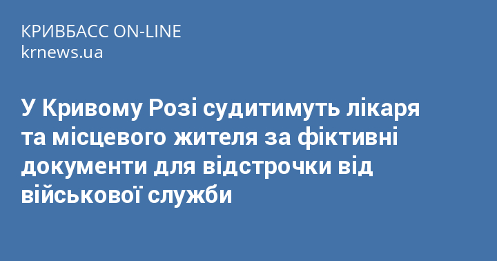 У Кривому Розі судитимуть лікаря та місцевого жителя за фіктивні документи для відстрочки від військової служби