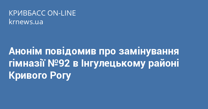 Анонім повідомив про замінування гімназії №92 в Інгулецькому районі Кривого Рогу