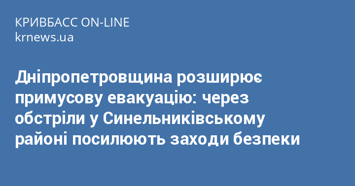 У зв’язку з постійним ускладненням безпекової ситуації та збільшенням інтенсивності російських обстрілів, Дніпропетровська обласна військова адміністрація (ОВА) ухвалила рішення розширити географію примусової евакуації населення.