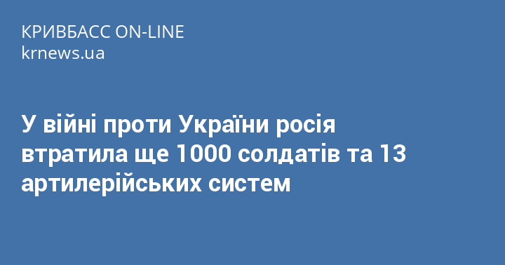 У війні проти України росія втратила ще 1000 солдатів та 13 артилерійських систем