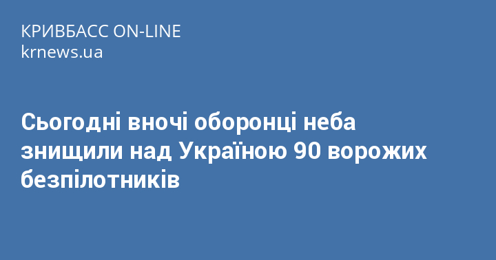 Повітряною обороною знищено 90 ворожих БпЛА.