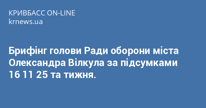 Брифінг голови Ради оборони міста Олександра Вілкула за підсумками 16 11 25 та тижня.