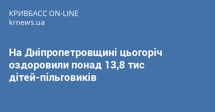 На Дніпропетровщині цьогоріч оздоровили понад 13,8 тис дітей-пільговиків