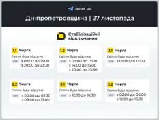 Дніпропетровщина: графіки відключень електроенергії  на 27 листопада