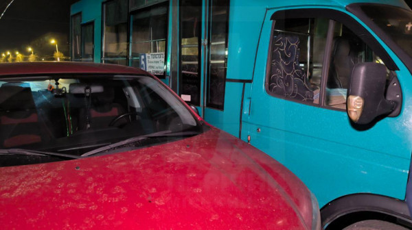 Власник Mitsubishi саме збирався вийти з авто, але затримався на кілька секунд, перевіряючи документи. У цей момент у його машину й прилетіла маршрутка — на щастя, чоловік не постраждав.