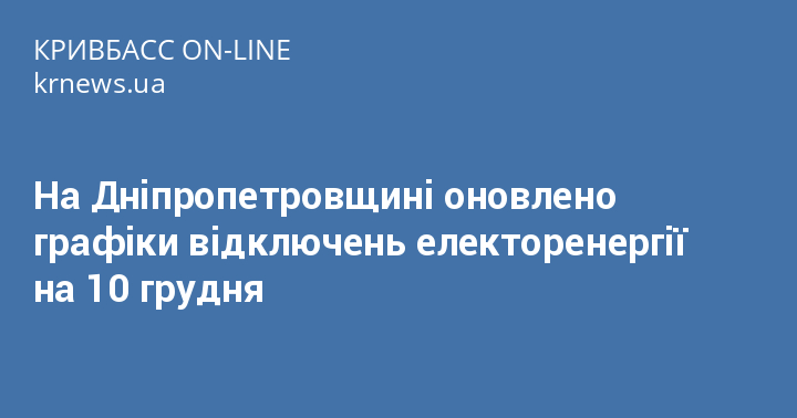 На Дніпропетровщині оновлено графіки відключень електоренергії на 10 грудня