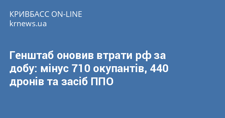 Генштаб оновив втрати рф за добу: мінус 710 окупантів, 440 дронів та засіб ППО