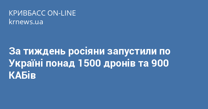 За тиждень росіяни запустили по Україні понад 1500 дронів та 900 КАБів