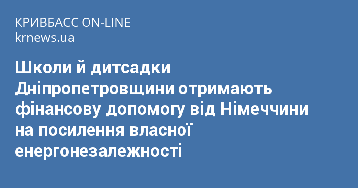 Школи й дитсадки Дніпропетровщини отримають фінансову допомогу від Німеччини на посилення власної енергонезалежності