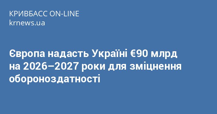 Європа надасть Україні €90 млрд на 2026–2027 роки для зміцнення обороноздатності