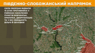 На Південно-Слобожанському напрямку Сили оборони відбили 16 атак противника у районах населених пунктів Вовчанськ, Приліпка, Дворічанське та у бік Ізбицького, Вільчі й Обухівки.