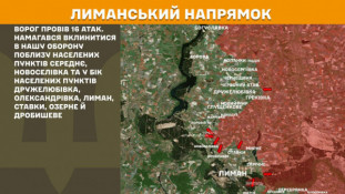 На Лиманському напрямку ворог провів 16 атак. Намагався вклинитися в нашу оборону поблизу населених пунктів Середнє, Новоселівка та у бік населених пунктів Дружелюбівка, Олександрівка, Лиман, Ставки, Озерне й Дробишеве.