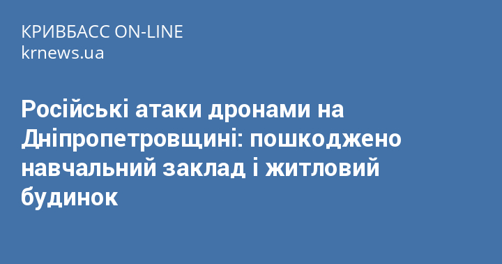 Російські атаки дронами на Дніпропетровщині: пошкоджено навчальний заклад і житловий будинок