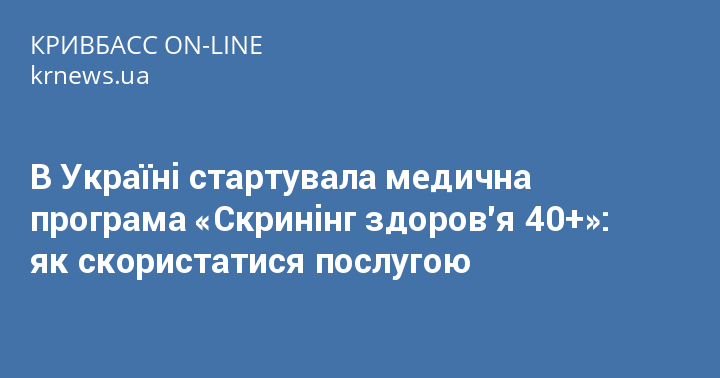 В Україні стартувала медична програма «Скринінг здоров'я 40+»: як скористатися послугою