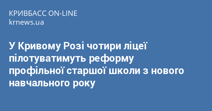 У Кривому Розі чотири ліцеї пілотуватимуть реформу профільної старшої школи з нового навчального року