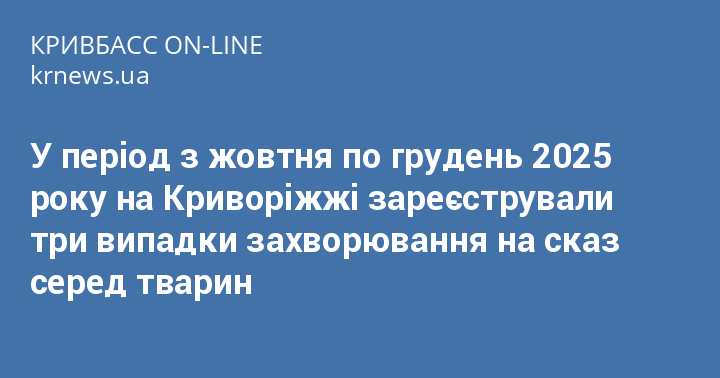 У період з жовтня по грудень 2025 року на Криворіжжі зареєстрували три випадки захворювання на сказ серед тварин