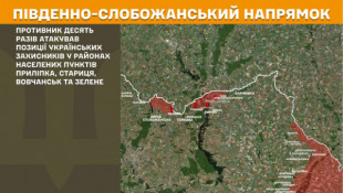 Південно-Слобожанський — 10 атак у районах Приліпки, Стариці, Вовчанська та Зеленого.
