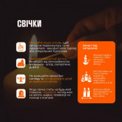 Свічки та інші відкриті джерела вогню встановлюйте на негорючих поверхнях і тримайте подалі від дітей та домашніх тварин. Портативні акумулятори заряджайте лише рекомендованими зарядними пристроями та не допускайте їх перегріву.