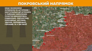 На Покровському напрямку наші захисники зупинили 44 штурмові і наступальні дії агресора у районах населених пунктів Никанорівка, Родинське, Мирноград, Покровськ, Котлине, Удачне, Молодецьке, Горіхове та у бік Філії.