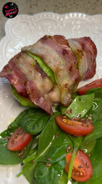 Вийшло з другої спроби, бо є нюанси) Авокадо має бути не геть маленьким, а бекон не варто замінювати хамоном. Бо він не дуже добро вертиться і тримається) А так врахуйте це і пробуйте. Дуже смачно і неймовірно красиво