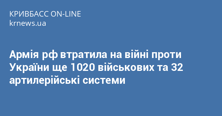Армія рф втратила на війні проти України ще 1020 військових та 32 артилерійські системи
