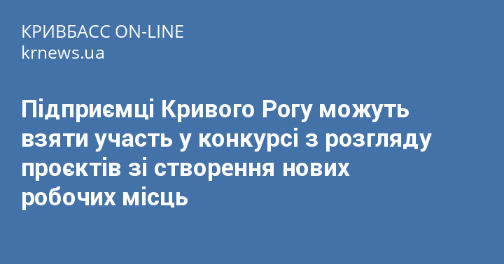 Підприємці Кривого Рогу можуть взяти участь у конкурсі з розгляду проєктів зі створення нових робочих місць