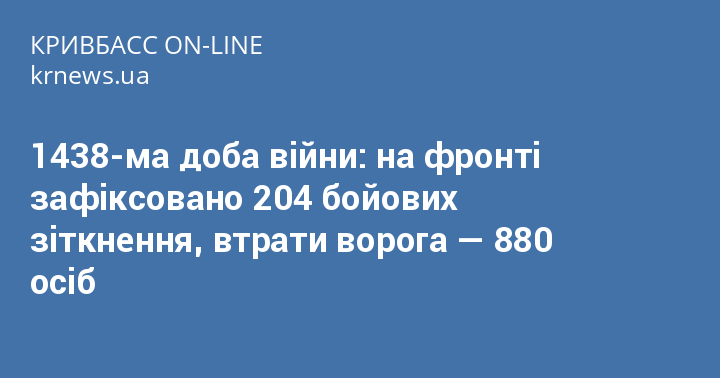 1438-ма доба війни: на фронті зафіксовано 204 бойових зіткнення, втрати ворога — 880 осіб