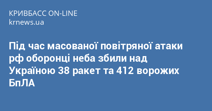 Під час масованої повітряної атаки рф оборонці неба збили над Україною 38 ракет та 412 ворожих БпЛА