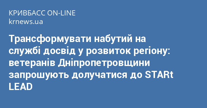 Трансформувати набутий на службі досвід у розвиток регіону: ветеранів Дніпропетровщини запрошують долучатися до STARt LEAD