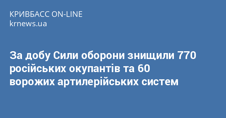 За добу Сили оборони знищили 770 російських окупантів та 60 ворожих артилерійських систем