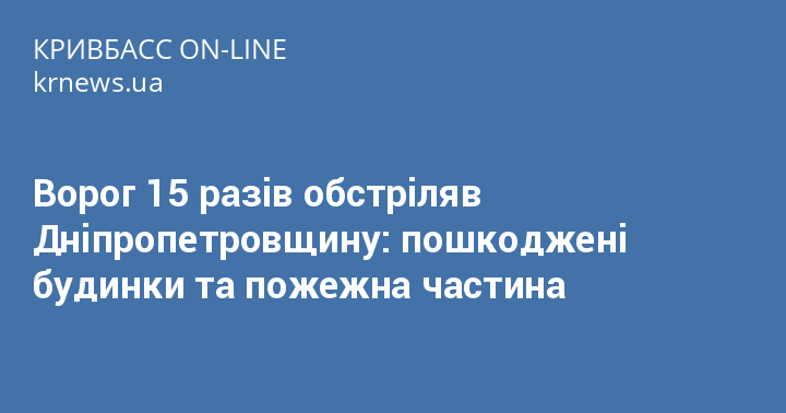 Ворог 15 разів обстріляв Дніпропетровщину: пошкоджені будинки та пожежна частина