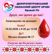 Криворізька станція переливання крові потребує поповнення запасів всіх груп крові. Містян запрошують долучитися до акції «Твоя кров врятує життя». Вона відбудеться 18 лютого в Інгулецькому районі
