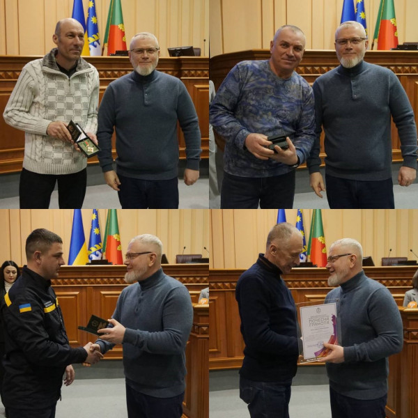 За мужність, виявлену під час ліквідації наслідків ворожих ударів, самовіддану та оперативну роботу в умовах відсутності електроенергії, нагороди отримали понад 60 рятувальників, медиків, енергетиків, тепловиків, газовщиків та комунальників, з них 30 - міську відзнаку нагрудний знак «За заслуги переж містом» III ступеня.