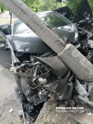 Сьогодні на вулиці Героїв АТО, навпроти стадіону КНУ, сталася серйозна аварія. Автомобіль влетів у стовп та завалив електроопору.