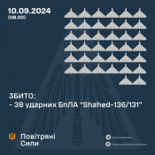 Протягом ночі над Україною збито 38 ударних БпЛА, три з них над Дніпропетровщиною