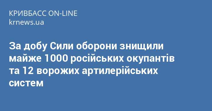 За добу Сили оборони знищили майже 1000 російських окупантів та 12 ворожих артилерійських систем