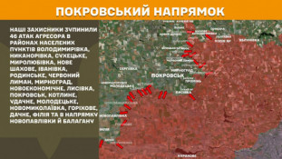 На Покровському напрямку наші захисники зупинили 46 атак агресора в районах населених пунктів Володимирівка, Никанорівка, Сухецьке, Миролюбівка, Нове Шахове, Іванівка, Родинське, Червоний Лиман, Мирноград, Новоекономічне, Лисівка, Покровськ, Котлине, Удачне, Молодецьке, Новомиколаївка, Горіхове, Дачне, Філія та в напрямку Новопавлівки й Балагану.
