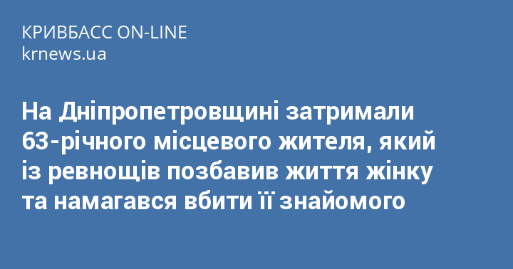 На Дніпропетровщині затримали 63-річного місцевого жителя, який із ревнощів позбавив життя жінку та намагався вбити її знайомого