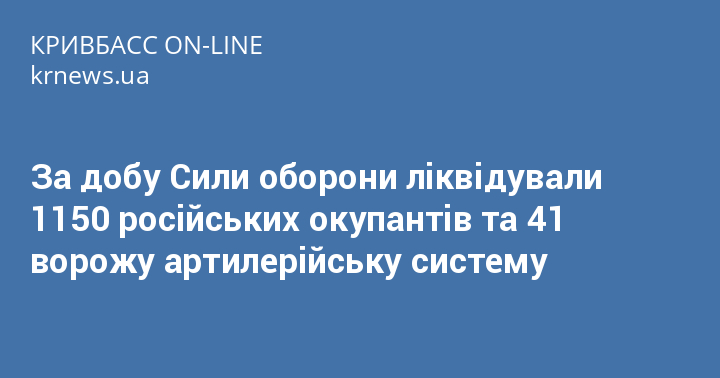 За добу Сили оборони ліквідували 1150 російських окупантів та 41 ворожу артилерійську систему
