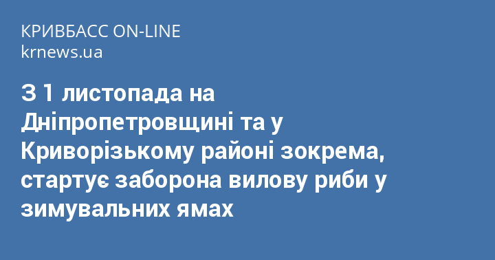 З 1 листопада на Дніпропетровщині та у Криворізькому районі зокрема, стартує заборона вилову риби у зимувальних ямах